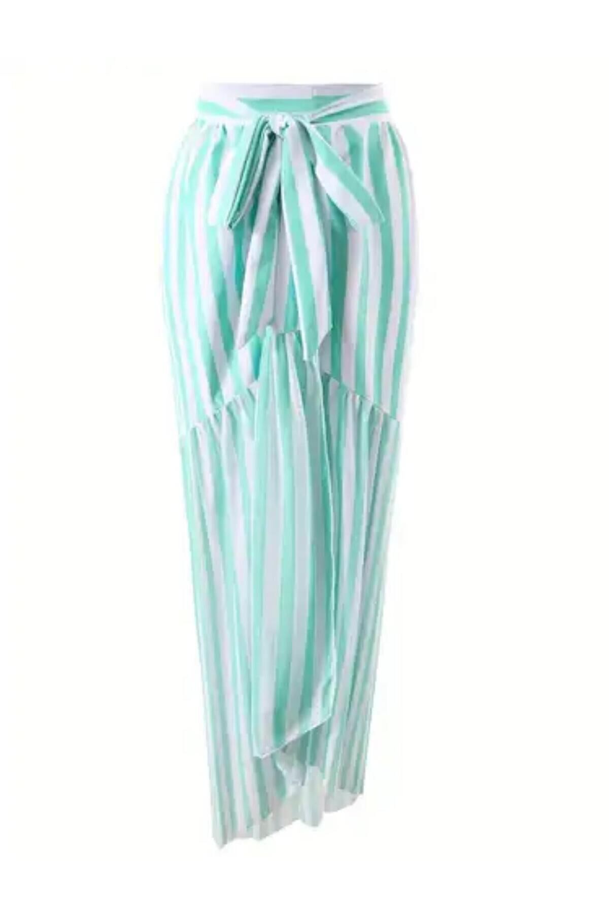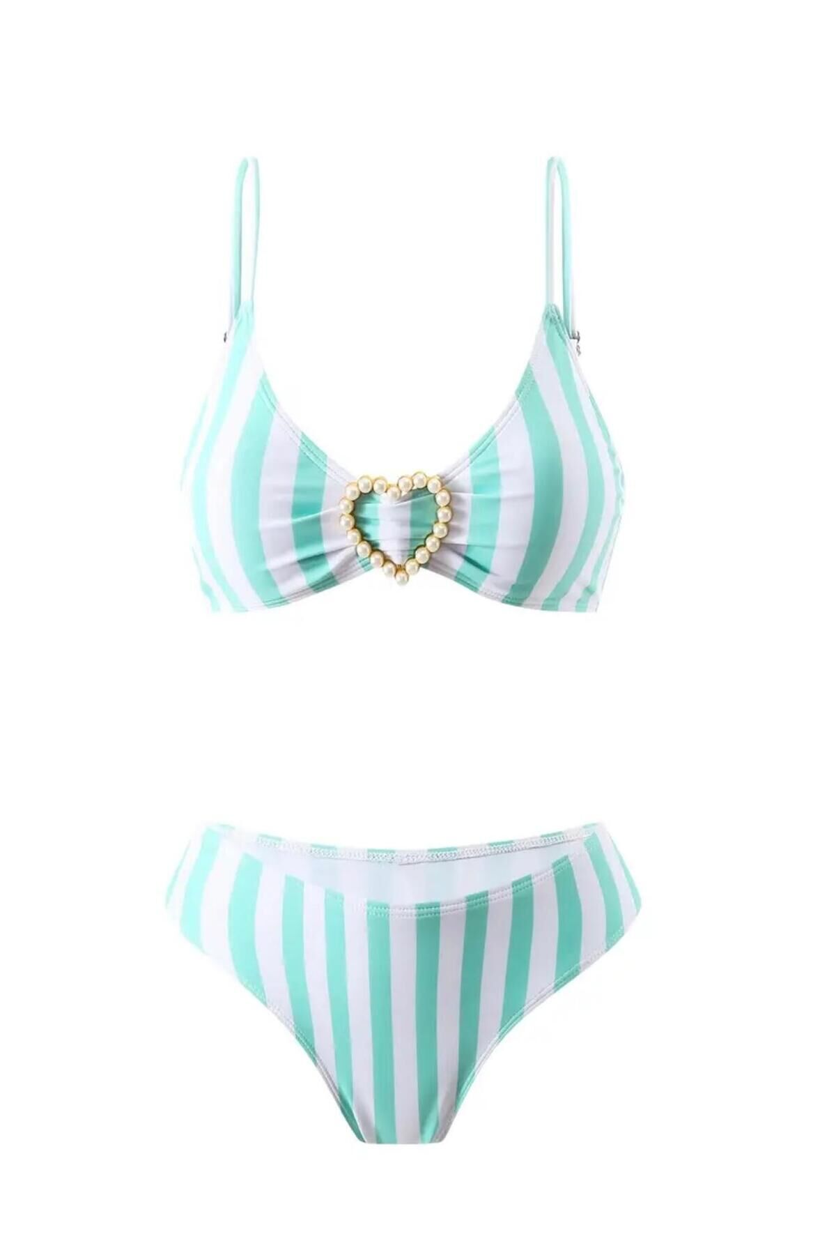 - İncili detaylarıyla göz alıcı bir görünüm sunan bikini pareo takımı, plaj modasının vazgeçilmez parçası.; - Slim silueti ile vücut hatlarınıza mükemmel uyum sağlayarak inceleyen etki yaratır.; - Üçgen üst kesimi ve derin V yaka tasarımı, feminen ve çekici bir stil oluşturur.; - Klasik alt kalıbı ve slip modeli, rahat hareket etme özgürlüğü sunarken şıklığınızdan ödün vermezsiniz.; - Askılı üst modeli sayesinde yaz aylarında serin ve konforlu bir kullanım sağlar.; - Düz dokuma kumaşı, hafifliği ve nefes alabilir yapısıyla yaz günlerinin vazgeçilmezi haline gelir.; - Normal bel tasarımı, rahat bir oturuş sunarken vücut hatlarınızı nazikçe sarar.; - Çizgili deseniyle modern ve dinamik bir görünüm kazandırırken, plajda fark yaratmanızı sağlar.; - Açık arka açıklığı ile seksi ve özgüvenli bir duruş sergilerken, rahatlığınızdan ödün vermezsiniz.; - 3'lü paket içeriği sayesinde farklı kombinler oluşturabilir ve her anınıza uygun bir seçenek bulabilirsiniz.; - Yetişkin kadınlar için özel olarak tasarlanmış bu bikini pareo takımı, plaj tekstil koleksiyonunuzun yıldızı olacak.;