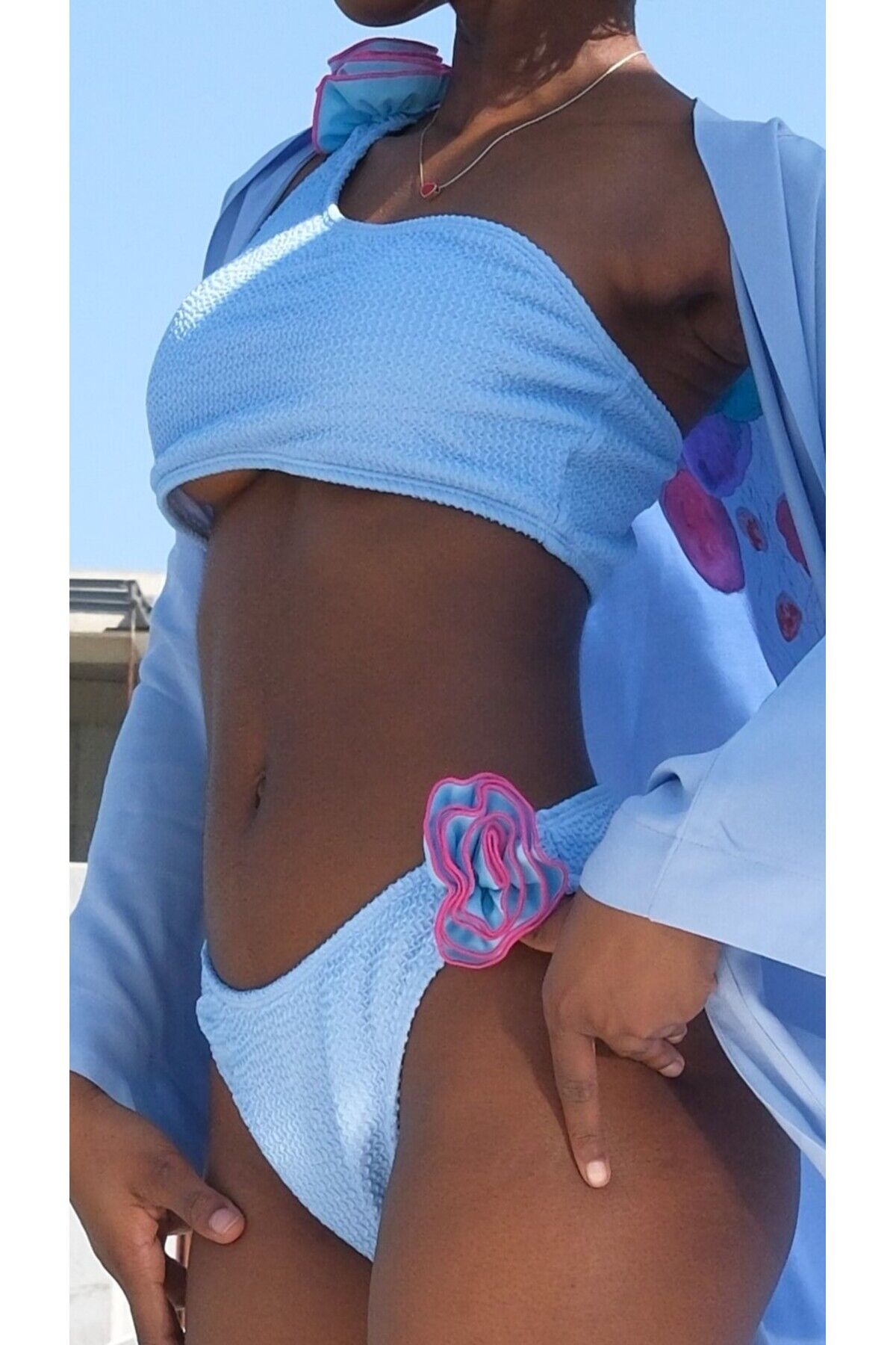-38-40 Beden arası uyumludur.; - Yaz aylarının vazgeçilmezi olan bu bikini takımı, plaj şıklığınızı tamamlar.; - Kadın ve kız koleksiyonuna özel tasarlanmış olup, her iki cinsiyete de hitap eder.; - Düz kesimiyle rahatlık sunarken, dokulu kumaşı ile göz alıcı bir görünüm sağlar.; - Beachwear ortamına uygun olarak tasarlanmıştır; deniz kenarı ve havuz başında stilinizi konuşturun.; - İki parçadan oluşan set, hem üst hem de alt parça ile kombin kolaylığı sunar.; - Sexy persona'ya sahip olan bu bikini takımında aksesuar detayları bulunur, böylece tarzınıza kişisel dokunuşlar ekleyebilirsiniz.; - Normal arka açıklığı sayesinde konforlu bir kullanım imkanı tanırken, menşei Türkiye'de üretilmiştir.; - Dokuma kumaş tipi dayanıklılığı arttırarak uzun süreli kullanım vaad eder.; - Yetişkin yaş grubuna yönelik olarak üretilmiştir; her bedene uygunluk gösterir.; - Kapsız kap seçeneği ile maksimum rahatlık sağlar ve bronzlaşmayı kolaylaştırır.; - Tek omuz üst silueti modern ve feminen bir duruş kazandırırken, straplez kesimi omuzları zarifçe sergiler.; - Normal bel tasarımı vücut hatlarını nazikçe sararak şık bir görünüm sunar.; - Klasik alt kalıp ile zamansız bir stil oluşturur; her tür plaj aksesuarına uyum sağlar.; - Dokulu deseniyle göz kamaştırırken, külot alt silueti rahat hareket etme özgürlüğü tanır.; - Slip kalıbı sayesinde vücudu sıkıca sararak mükemmel oturuş performansı sergiler.; - Bralet üst modeli modern çizgiler taşıyan bu bikini takımında feminen detaylar ön plana çıkarılır.