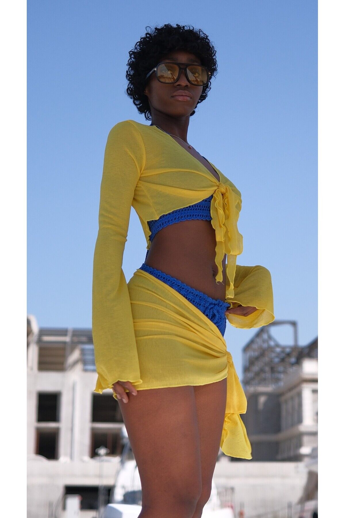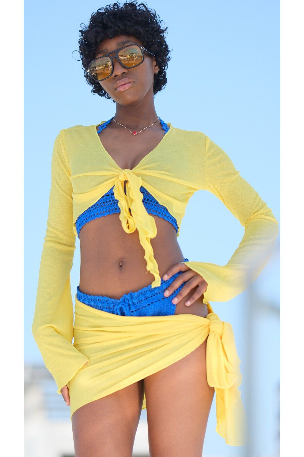 - Plaj şıklığınızı tamamlayacak uzun kollu büstiyer takımı, yaz aylarının vazgeçilmezi.; - Rahat hareket etmenizi sağlayan kapsız tasarımıyla konforlu bir kullanım sunar.; - Dokulu kumaşı sayesinde göz alıcı bir görünüm kazandırırken, düz deseniyle sadelikten ödün vermez.; - Bağlama veya bağcık detaylarıyla kişisel zevkinize göre ayarlama imkanı tanır.; - Crop silueti ile modern ve dinamik bir tarza sahip olmanızı sağlar.; - Büstiyerin üst silueti vücut hatlarınıza mükemmel uyum sağlayarak feminen bir duruş sergiler.; - Sexy persona'sıyla dikkatleri üzerinize çekerken, yetişkinler için idealdir.; - Kaliteli dokuma kumaşı sayesinde uzun süreli kullanım vaat eder.