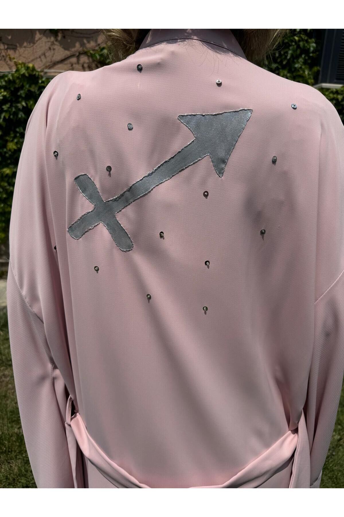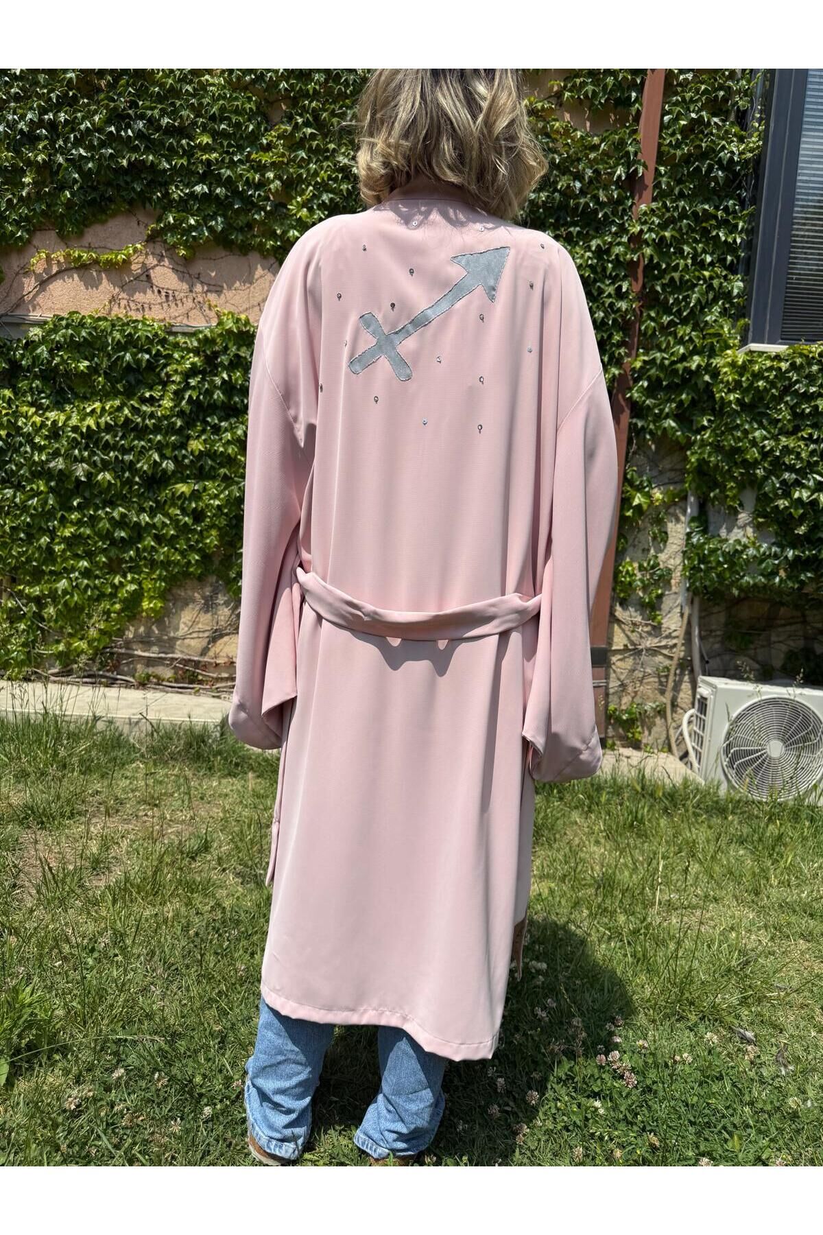 HANDMADE SILVER NAKIŞLI BURÇ UZUN KİMONO (YAY)