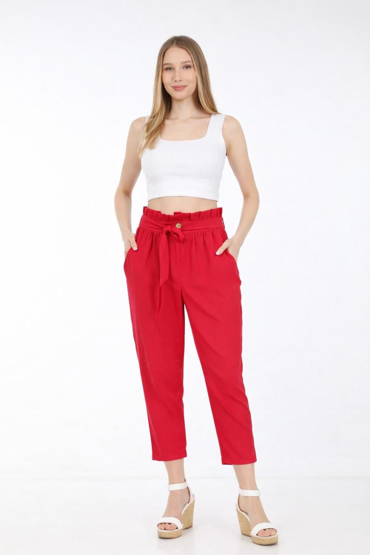 - Rahat ve şık bir görünüm sunan havuç model pantolon, günlük kullanım için idealdir.; - Sade ve düz deseniyle her türlü üst giyimle kolayca kombinlenebilir.; - Genç koleksiyonuna ait bu pantolon, dinamik tarzınızı yansıtır.; - Bambu materyali sayesinde yumuşak dokusuyla konforlu bir deneyim sağlar.; - Bağcıklı tasarımı ile kişisel zevkinize göre ayarlama imkanı sunar.; - Türkiye'de üretilmiş olup yerel malzemelerden elde edilmiştir.; - Dokuma kumaşı dayanıklılığı artırırken nefes alabilirliği korur.; - Hem kadın hem de kız kullanıcılar için uygun tasarım sunar.; - Yetişkinlerin rahatlıkla tercih edebileceği standart boyda üretilmiştir.; - Normal bel kesimi ile gün boyu rahat hareket etme özgürlüğü tanır.; - Dar paça detayı modern ve şık bir siluet oluştururken ayakkabınıza mükemmel uyum sağlar.