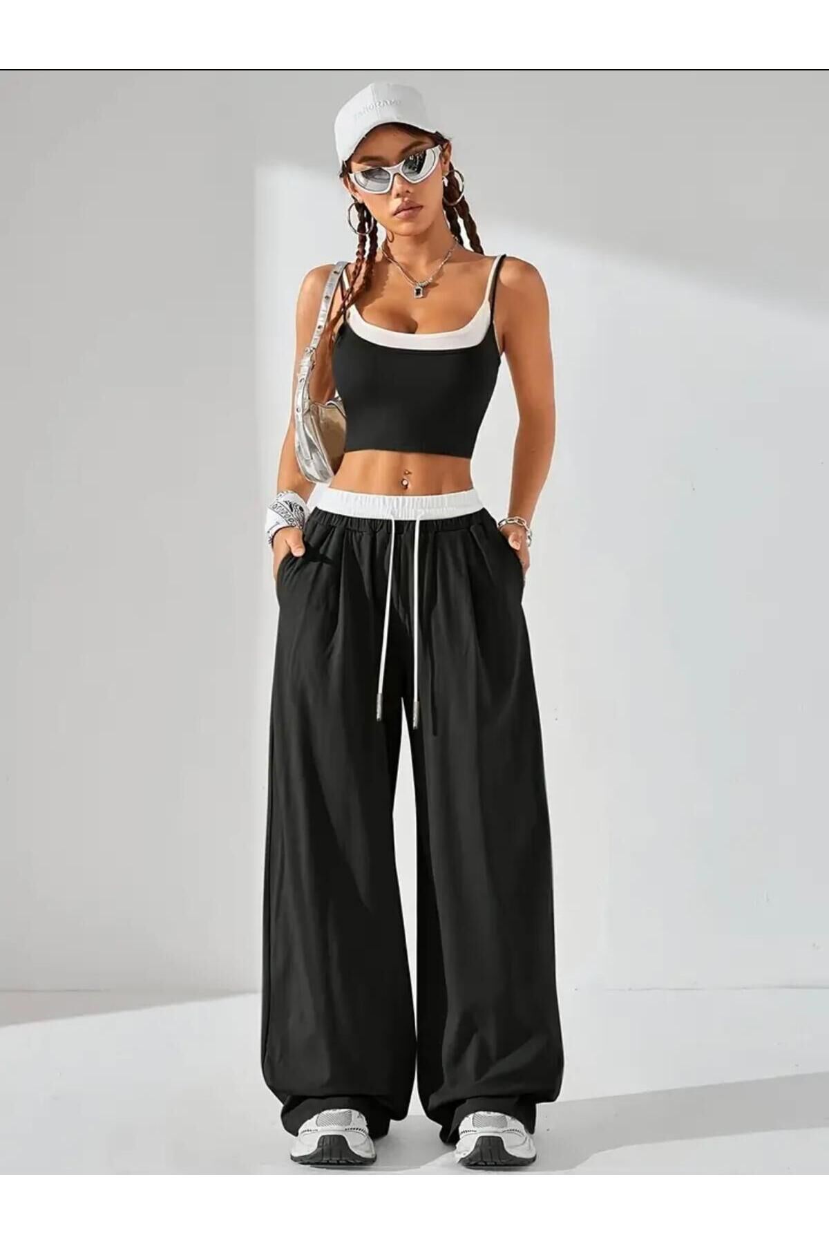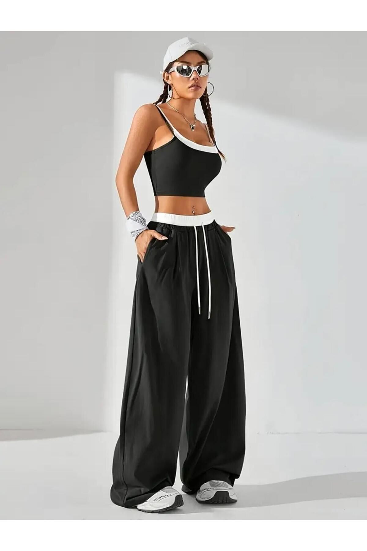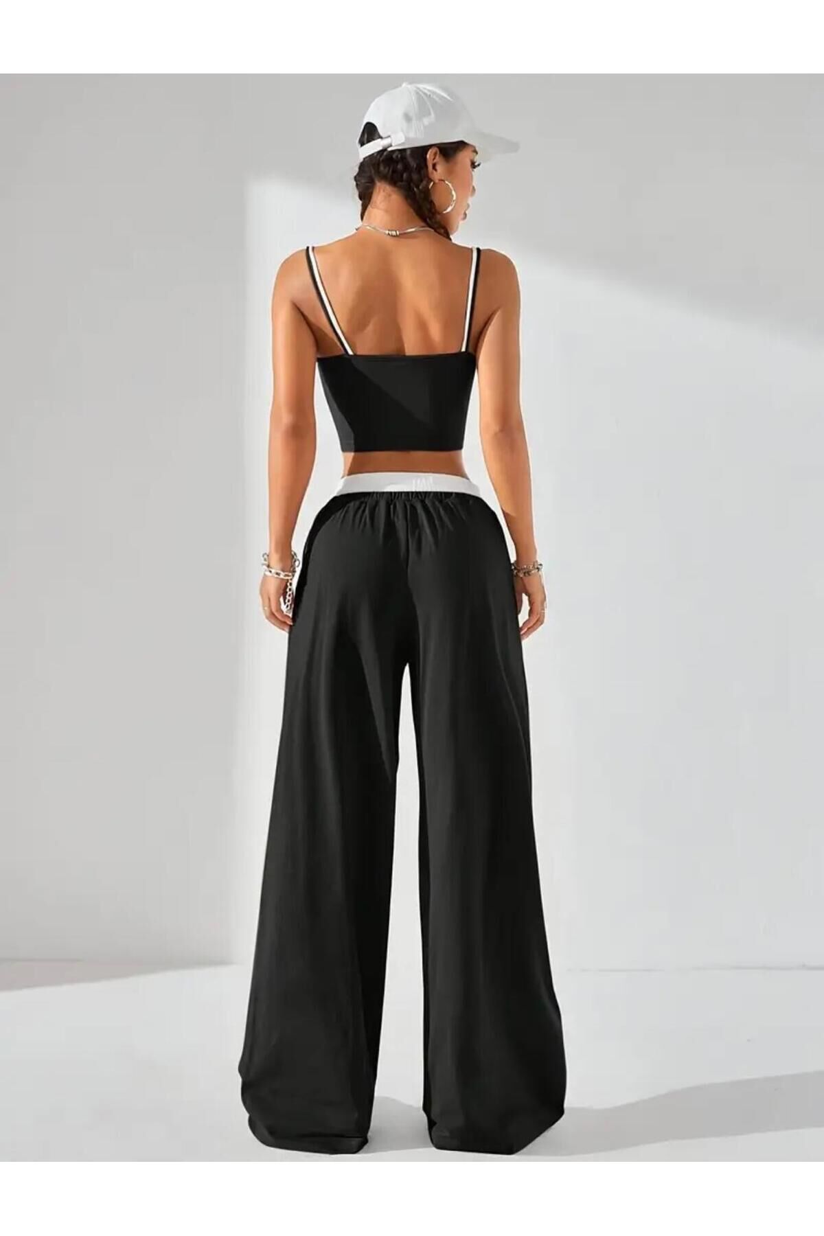 - Geniş paça tasarımı ile rahat hareket etme özgürlüğü sunar.; - Bağlama detayları sayesinde kişisel zevke göre ayarlama imkanı sağlar.; - Beli lastikli yapısı, gün boyu konforlu bir kullanım vaat eder.; - Bağcıklı kemer özelliği ile şıklığı ve rahatlığı bir arada sunar.; - Tüm sezonlarda tercih edebileceğiniz çok yönlü bir tasarım.; - Kare yaka detayı ile modern ve sofistike bir görünüm kazandırır.; - Regular silueti sayesinde vücut hatlarınıza uyum sağlar.; - Orta kalınlıkta kumaşı mevsim geçişlerinde ideal konfor sunar.; - Young koleksiyonunun dinamik ruhunu yansıtan genç ve enerjik tasarım.; - Lastikli bel detayı ile pratik kullanım imkanı tanır.; - Uzun boy kesimi sayesinde zarif bir siluet oluştururken, ince askılı üst parça feminen dokunuşlar katıyor.; - Atlet-pantolon kombiniyle günlük şıklığınızı tamamlamanız için idealdir.; - Trend ortamlarda dahi stil sahibi görünmenizi sağlayacak modern tasarıma sahiptir.; - Polyester karışımlı materyali dayanıklılığı arttırarak uzun süreli kullanım vaat eder.